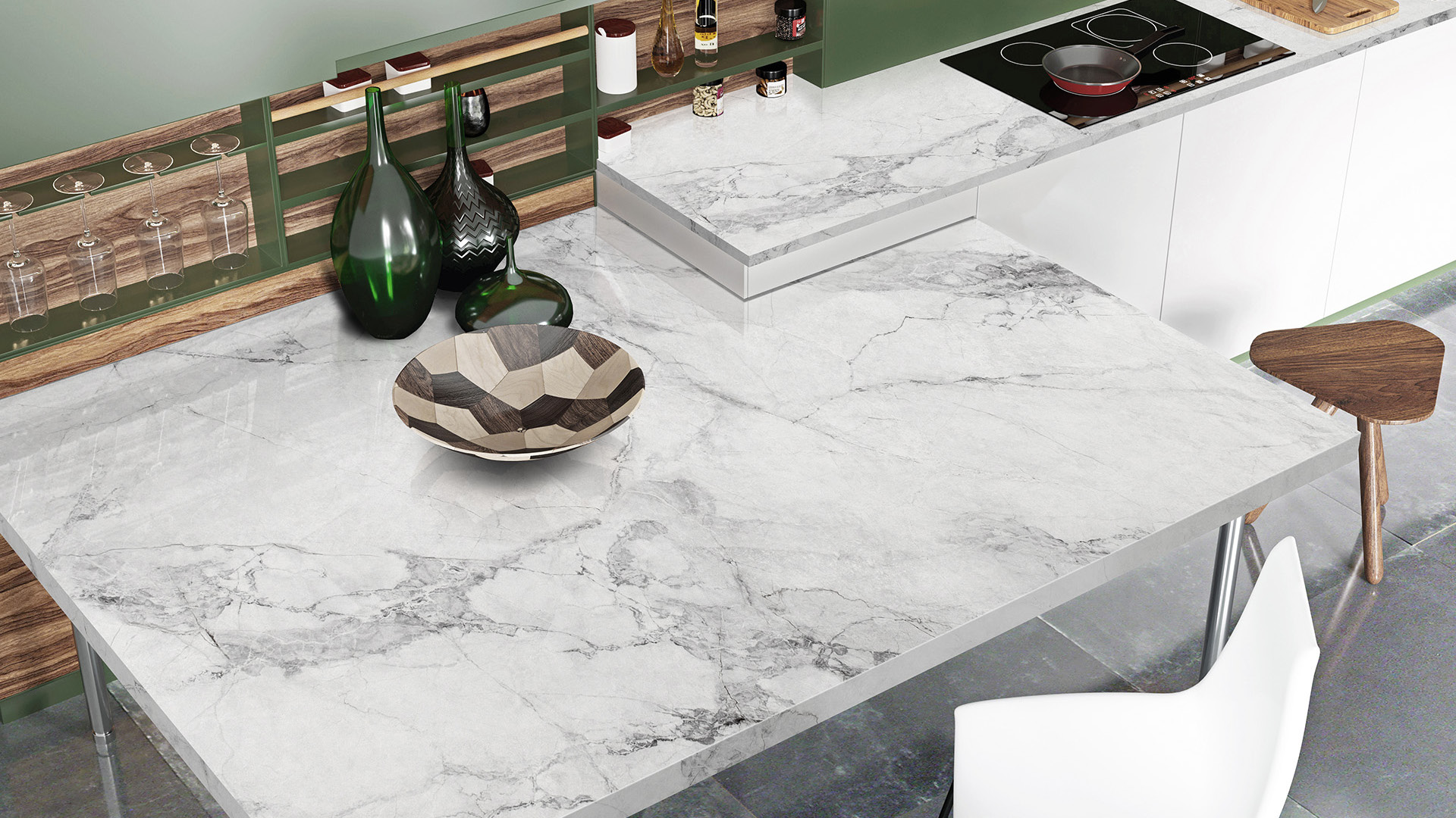 The Digital Print collection is a milestone in the production of quartz slabs. Thanks to the Nano-Ink deep printing technology, the authenticity of natural stone colours, a deep 3D effect and increased scratch resistance are achieved.